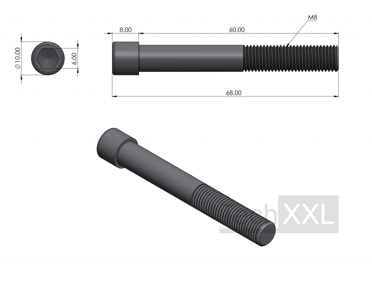 - ↪ Cylindrical screw with hexagon socket DIN 912 M8x60